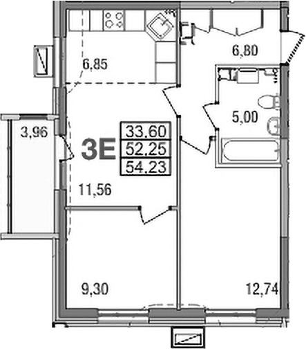 3-к квартира 52 м² на 2 этаже 16 этажного панельного дома